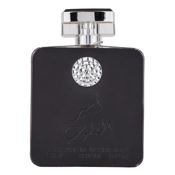 Ameer Al Quloob to świeży, aromatyczny zapach, który otwiera się nutami zielonego jabłka, soczystej mandarynki i gorzkiej pomarańczy. Serce perfum wypełniają akordy geranium, gałki muszkatołowej, kardamonu i nut wodnych. Baza jest drzewna i kojąca - z cedrem, fasolą tonka, wetywerią, drzewem sandałowym, mchem dębowym i piżmem. Ameer Al Quloob to idealny wybór na co dzień, który podkreśli Twój elegancki, nowoczesny i sportowy styl. Doskonale sprawdzi się w biurze, pracy oraz podczas relaksu.