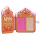 Stosowanie: Nałóż róż na szczyty policzków, aby uzyskać różany rumieniec, a rozświetlacz zaaplikuj na kości policzkowe, grzbiet nosa i łuk brwiowy, by nadać skórze promienny, złocisty blask.