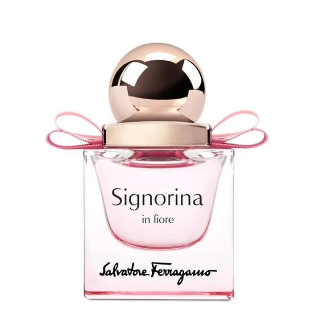 Kobiecość kompozycji zaprojektowanej w 2017 roku przez markę Salvatore Ferragamo podkreśla już na wstępie flakon, w której została ona zamknięta. Różowawa buteleczka ozdobiona zamknięciem z kokardką jest zapowiedzią tego, co się skrywa w środku. Perfumy o kwiatowo-owocowym zapachu pobudzają, pomagają się zrelaksować, a jednocześnie przywracają dobry humor. Signorina In Fiore w nutach głowy objawia się prawdziwie słodkimi, lecz właściwie stonowanymi wonnościami – prym wiedzie tu granat z gruszką uzupełnione akordem sorbetu. W sercu tej niezwykłej wody toaletowej gości kwiatowy ogród – jaśmin oraz kwiat wiśni skłaniają do chwili relaksu. Białe piżmo oraz drzewo sandałowe to natomiast esencja perfum Salvatore Ferragamo umieszczone w bazie całej kompozycji. Stworzony zapach pozwoli Ci poczuć dziewczęcy urok i kobiecą siłę, ale też dzięki niemu uciekniesz myślami od codziennej rzeczywistości.